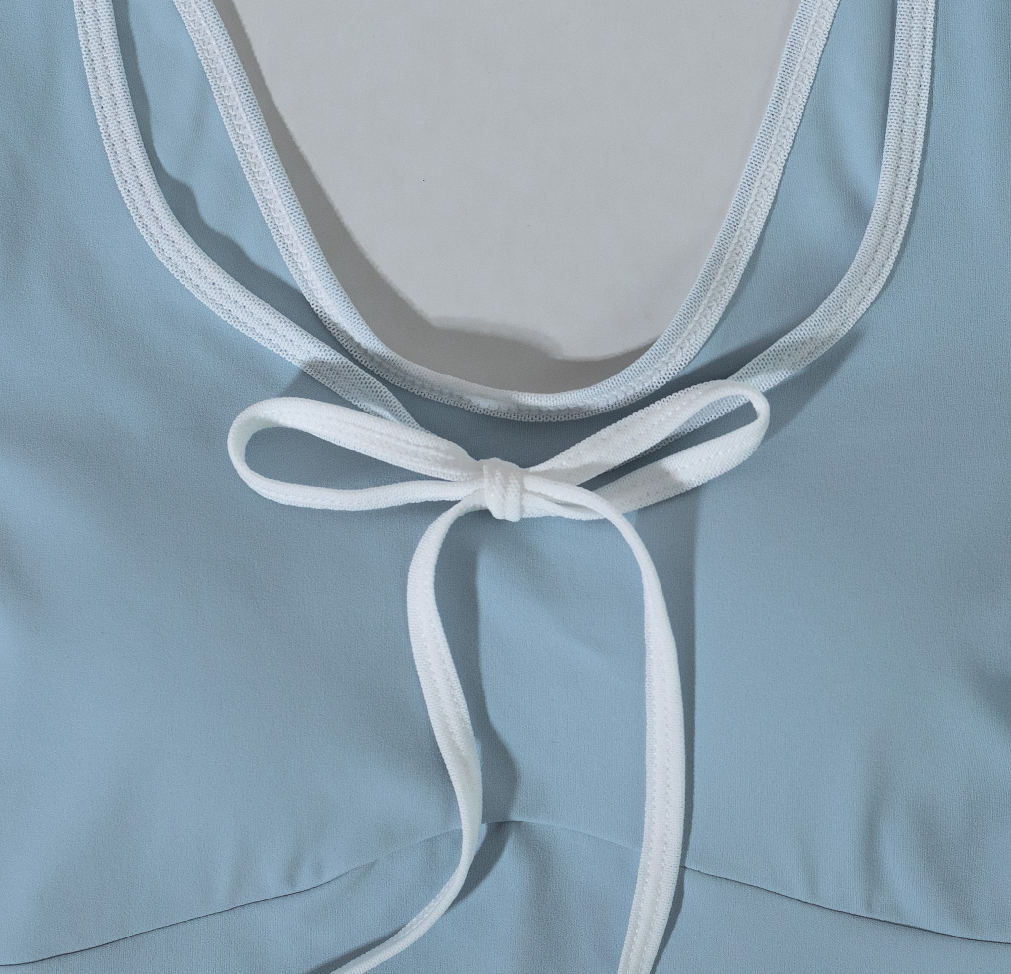 大U領網紗滾邊綁帶設計,完美展露脖子鎖骨線條